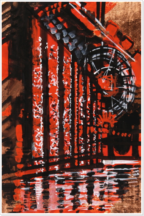 1 Acryl/Lack/Gold auf Holz, 20x30x5 cm