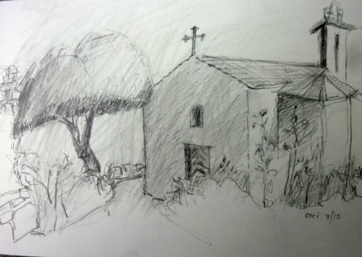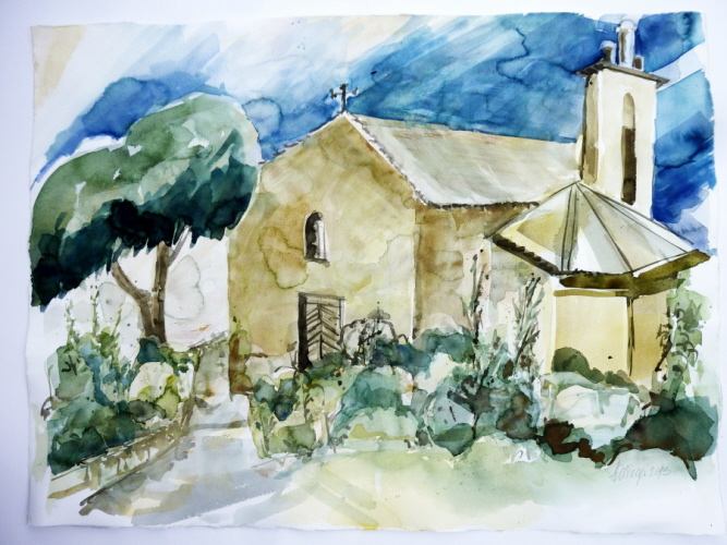 Alte Kirche i. Oci, Aquarell a. Bütten 56 x 75 cm